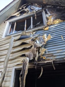 I swallowed hard as I looked up into the window above that lead into the bedroom that had belonged to my brother. I could see the ceiling caving in over the area that had housed his expensive gaming PC. The door and the window to the lower level kitchen were boarded up, so we were unable to see much